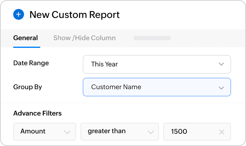 Build reports from scratch based on your requirement using the report builder. Powerful filters and customization options help you uncover specific and deeper insights.